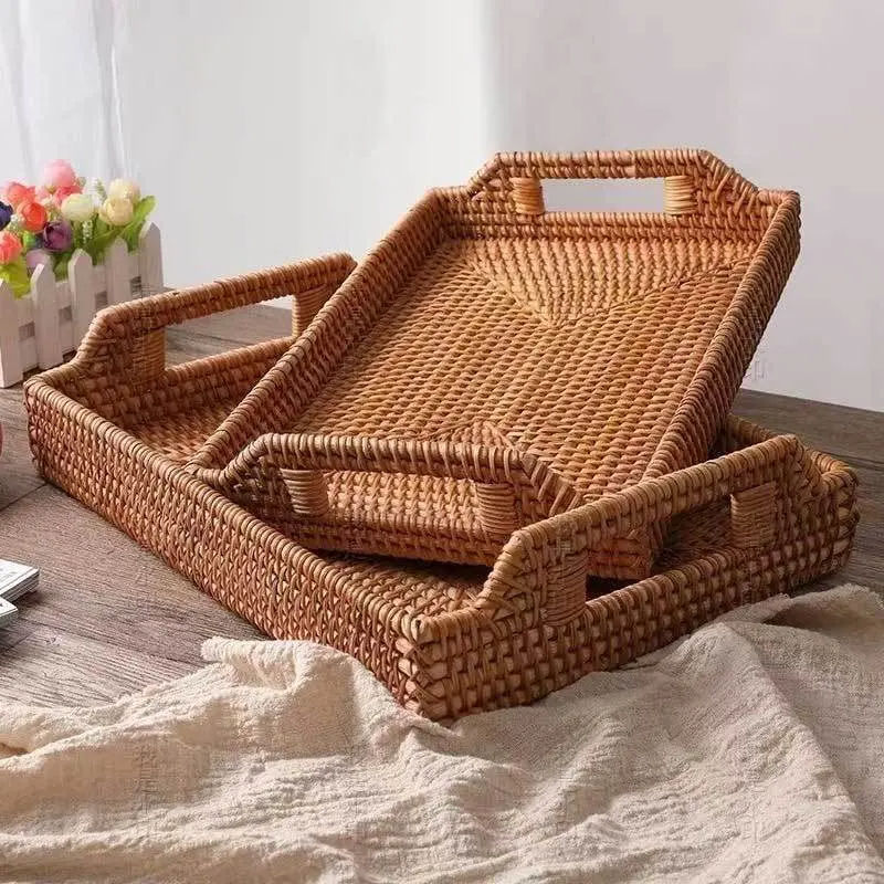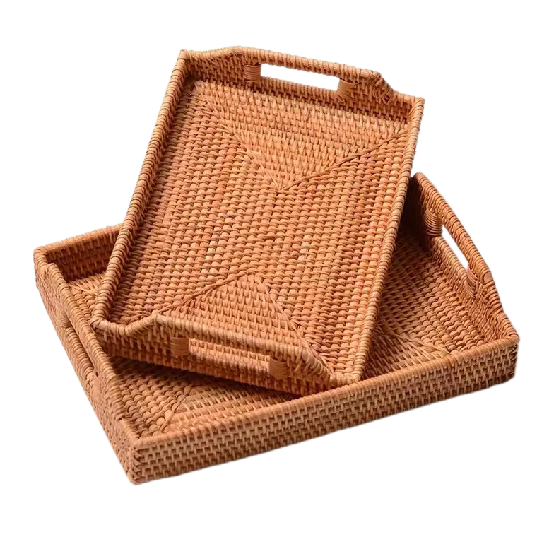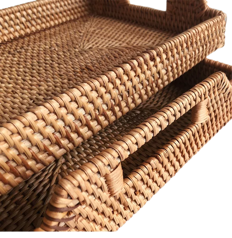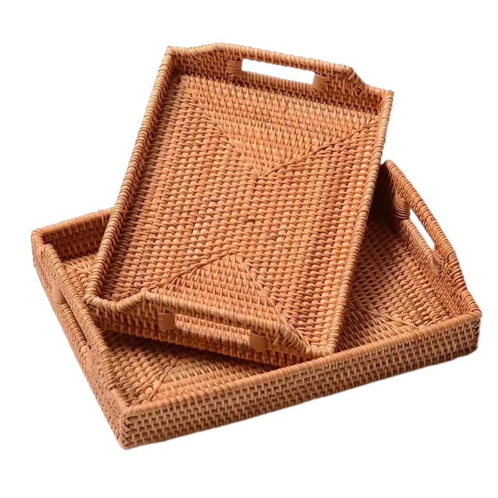 Plateau Rectangar en Rotin Naturel Tissé Motif de Panier Décoratif Plateau de Service pour Décoration de Table de Cuisine ou de Restaurant