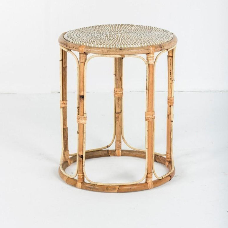 Natural Rattan Stool Handmade Bamboo Woven Accent Stool for Living Room or Bedroom Corner Decoration