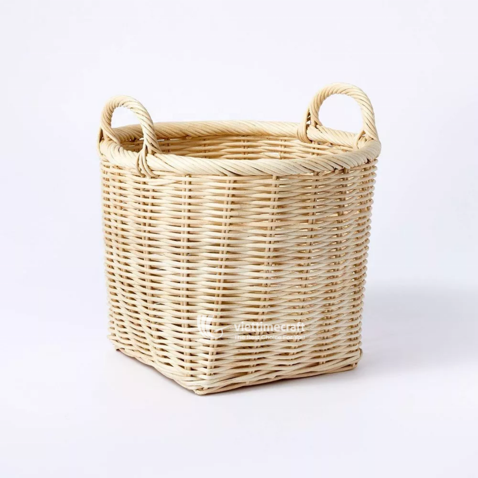 Ensemble de paniers de rangement en rotin naturel avec poignées intégrées, panier à linge et organisateur de jouets tissés artisanalement