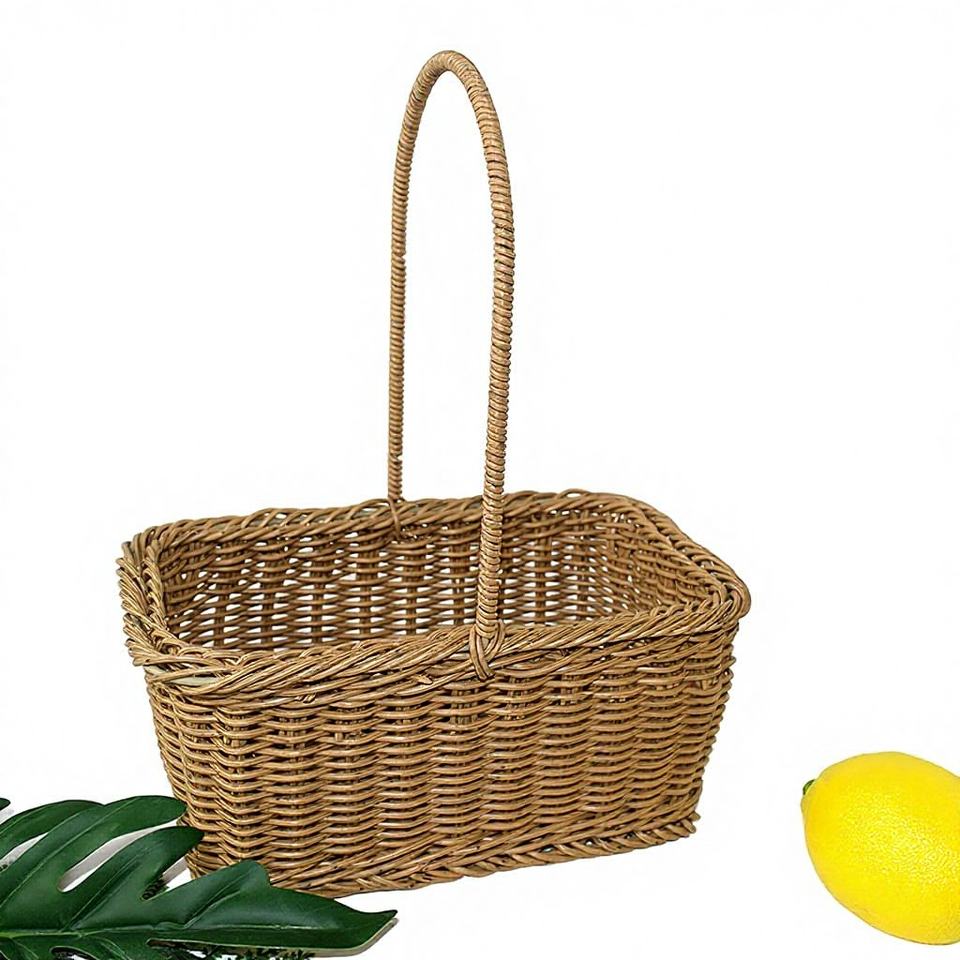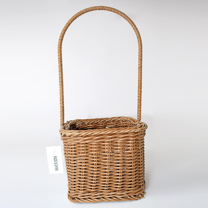 Panier portable en rotin naturel tressé, style pastoral, carré et rectangulaire, pour le rangement domestique, l'emballage de fleurs et l'utilisation pour les boissons