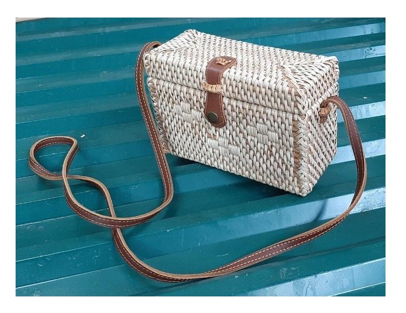 Sac en Rotin Naturel Tissé Rond Sac en Paille Tissé à la Main Sac en Rotin Rectangulaire Artisanat Vietnam