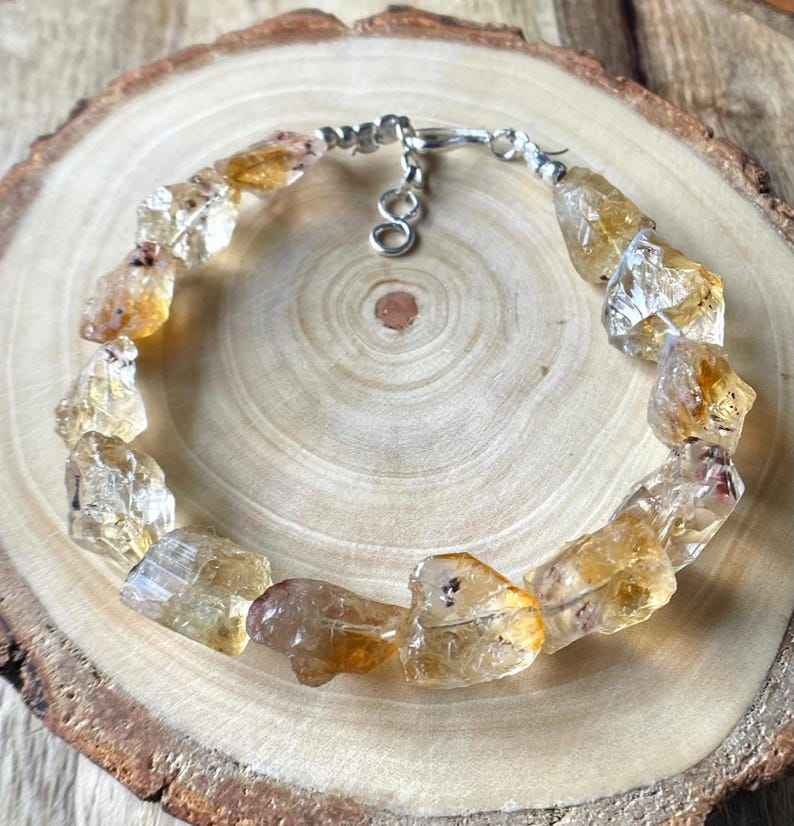 Bracelet brut Citrine brute naturelle 925 perles en argent