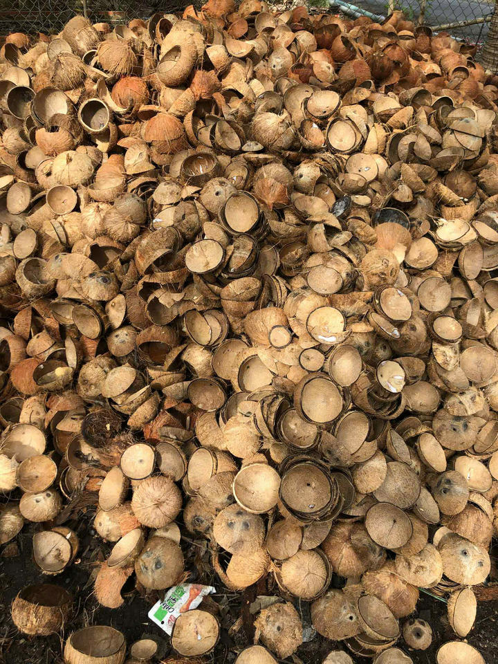 Coquille de noix de coco brute naturelle pour l'artisanat et l'approvisionnement en charbon de bois, source d'exportation fiable avec des prix de gros compétitifs