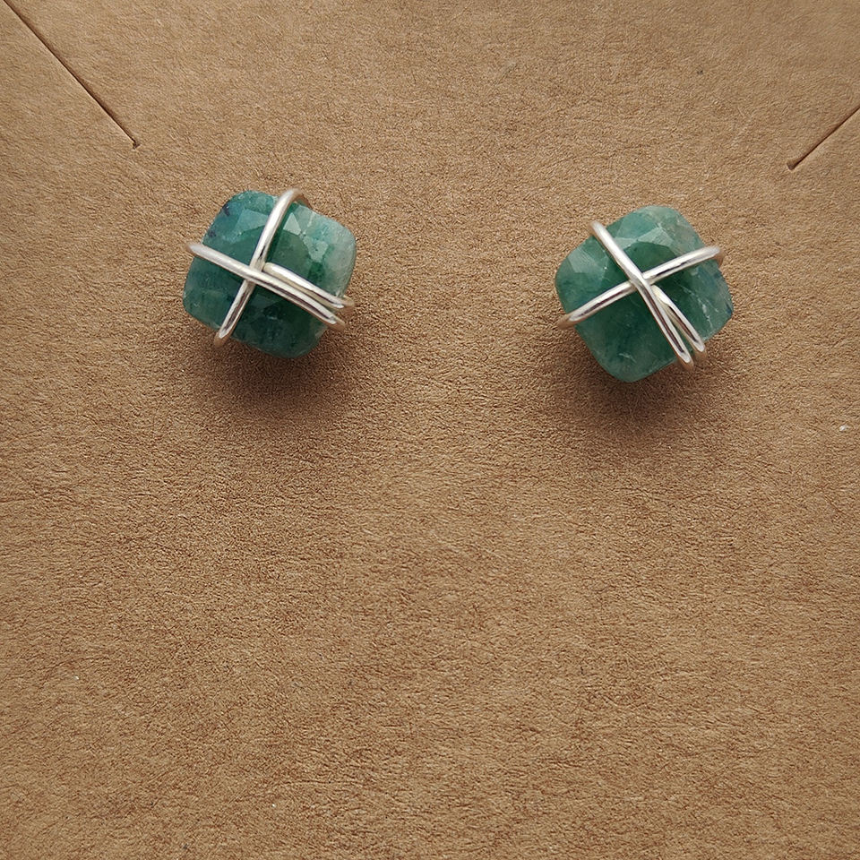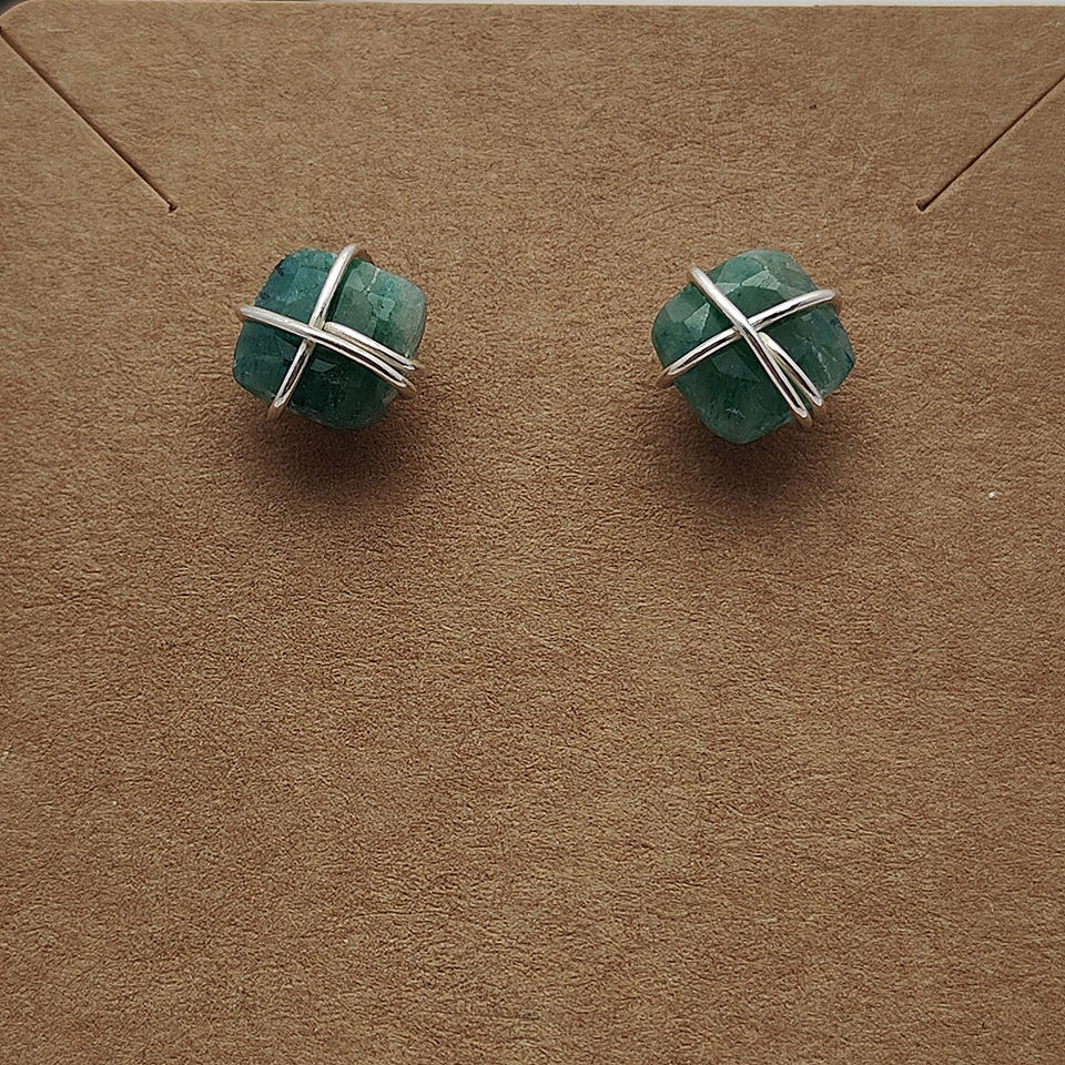 Product name:Natural Raw Emerald stud earrings