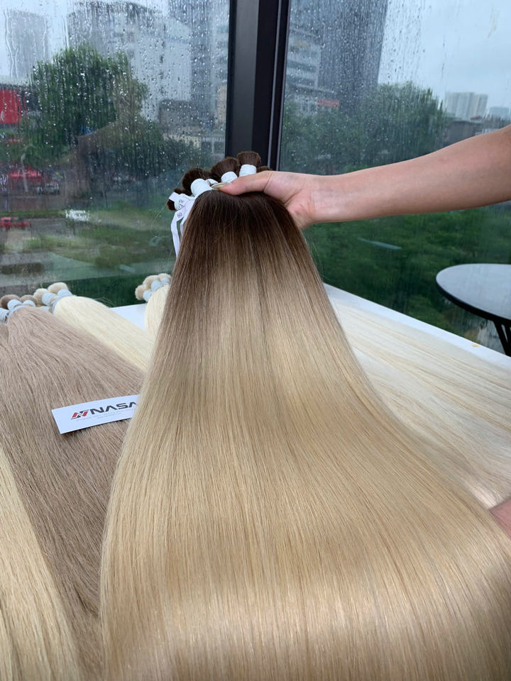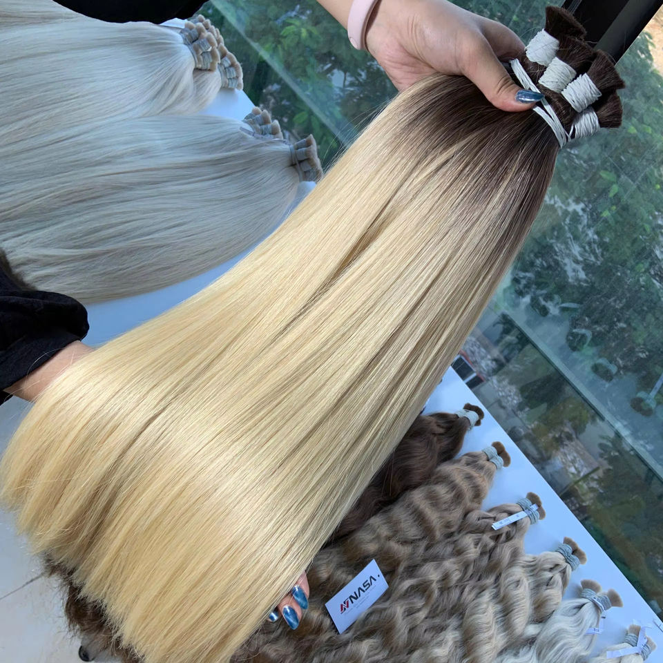 Extensions de cheveux vierges vietnamiennes en vrac, prix d'usine, cuticules alignées, couleurs ombrées blondes