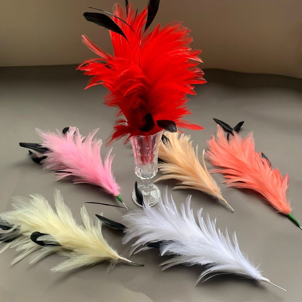 Plumes de coq naturelles, teintes et lavées, avec fil métallique, pour la fabrication de fleurs, vente en gros, coiffes, bandeaux et costumes de spectacle