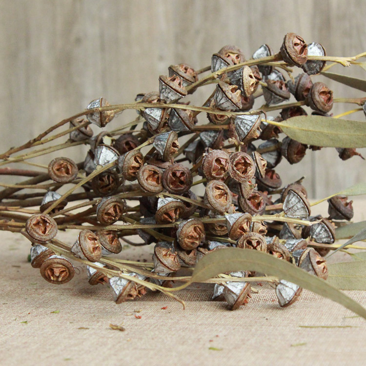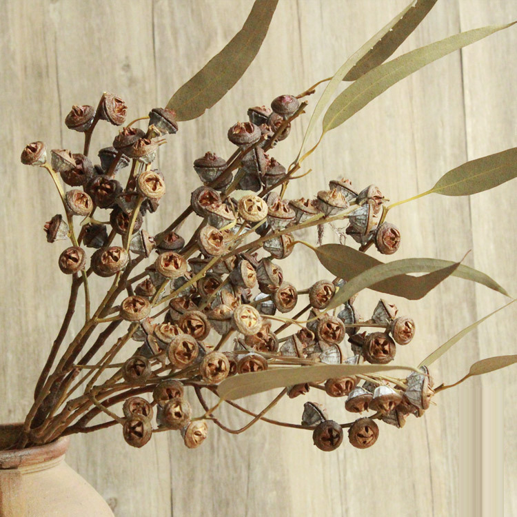 Bouquet de branche de fruit d'eucalyptus bleu séché de vraie fleur sèche naturelle pour le décor occidental de pays de mariage de cawell