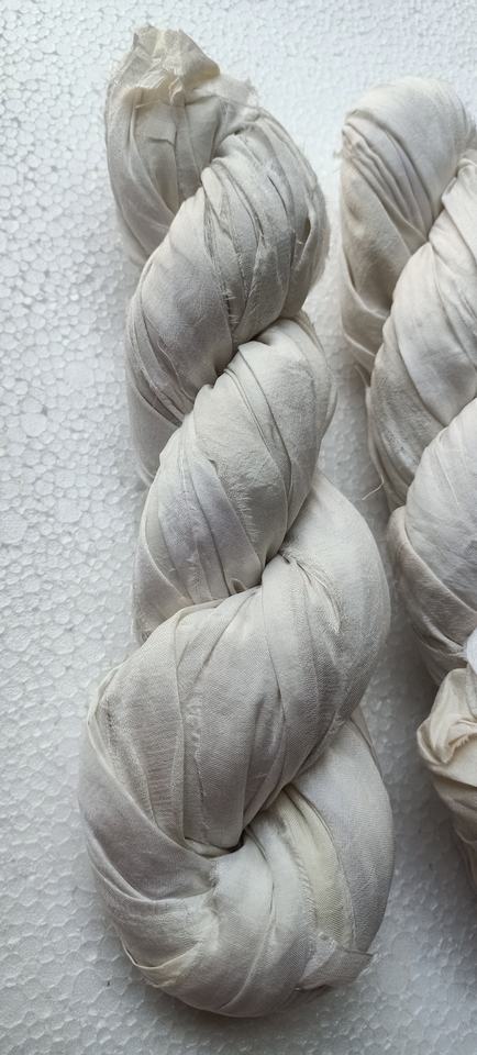 Rubans naturels de soie sari recyclés fabriqués à partir de sari de soie recyclée et de tissus adaptés à la teinture et idéaux pour les projets artisanaux