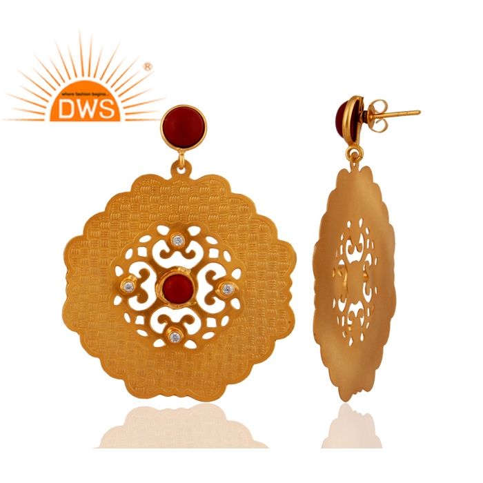 Boucles d'oreille en pierre précieuse pour femmes, bijou pendant, de couleur corail rouge, naturel, plaqué or jaune 18k, vente en gros, tendance,