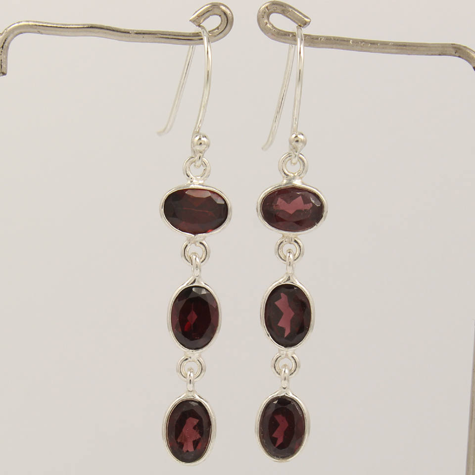 Grenat rouge naturel ovale 3 pierres femmes fête porter boucles d'oreilles 925 bijoux en argent Sterling magasin de gros