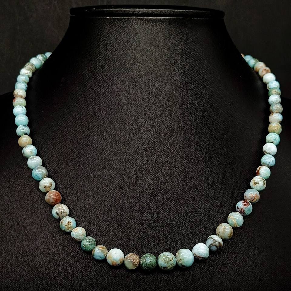 Collier de perles de pierres précieuses rondes lisses en Larimar rouge naturel Colliers ras du cou en pierre de Larimar naturel pour femmes hommes en vrac