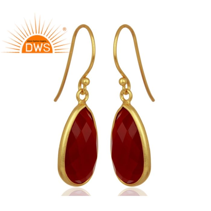 Boucles d'oreilles Onyx rouge naturel pour femmes, bijou pendant en pierre précieuse, plaqué or et argent, vente en gros, 18k