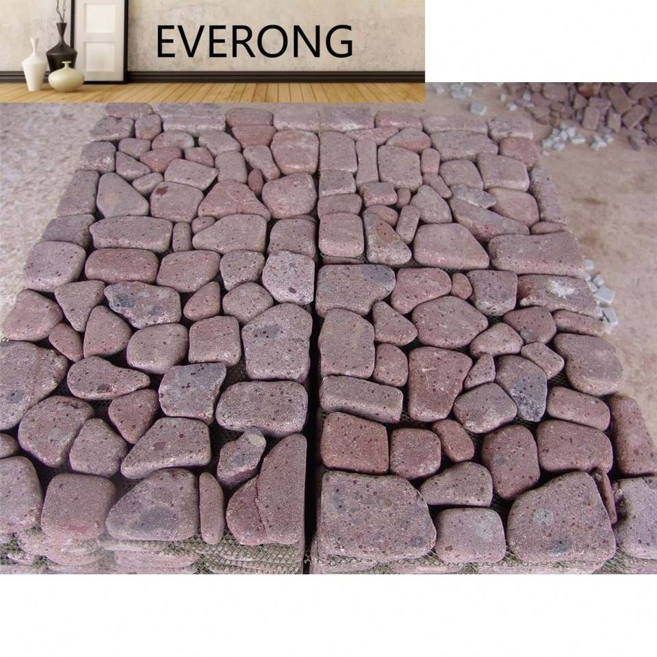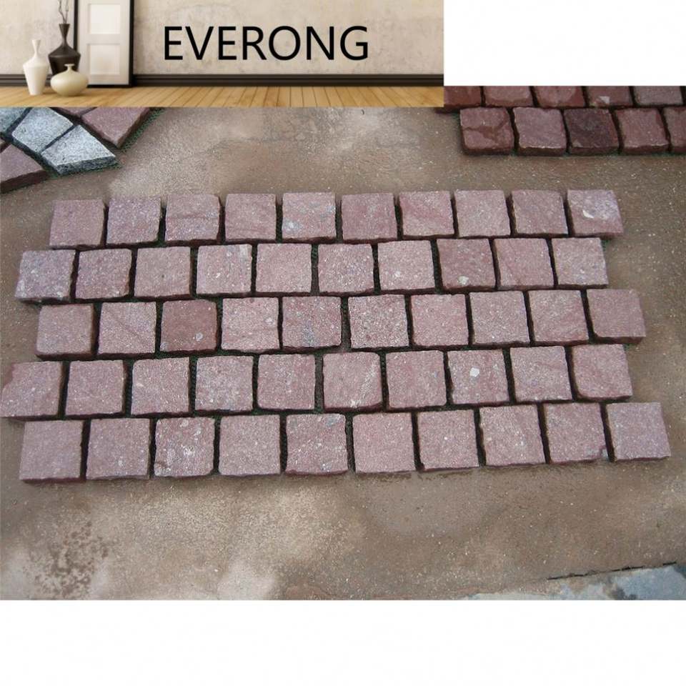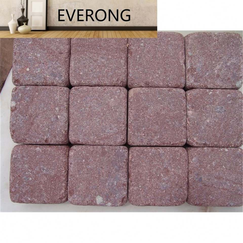 Pavés de pavage en porphyre rouge naturel Porphyre rouge Porfido Pierre de granit rouge Pavé Finition dégringolée