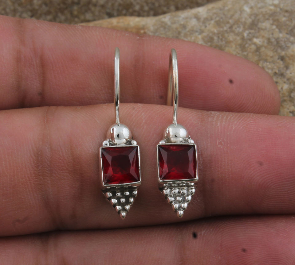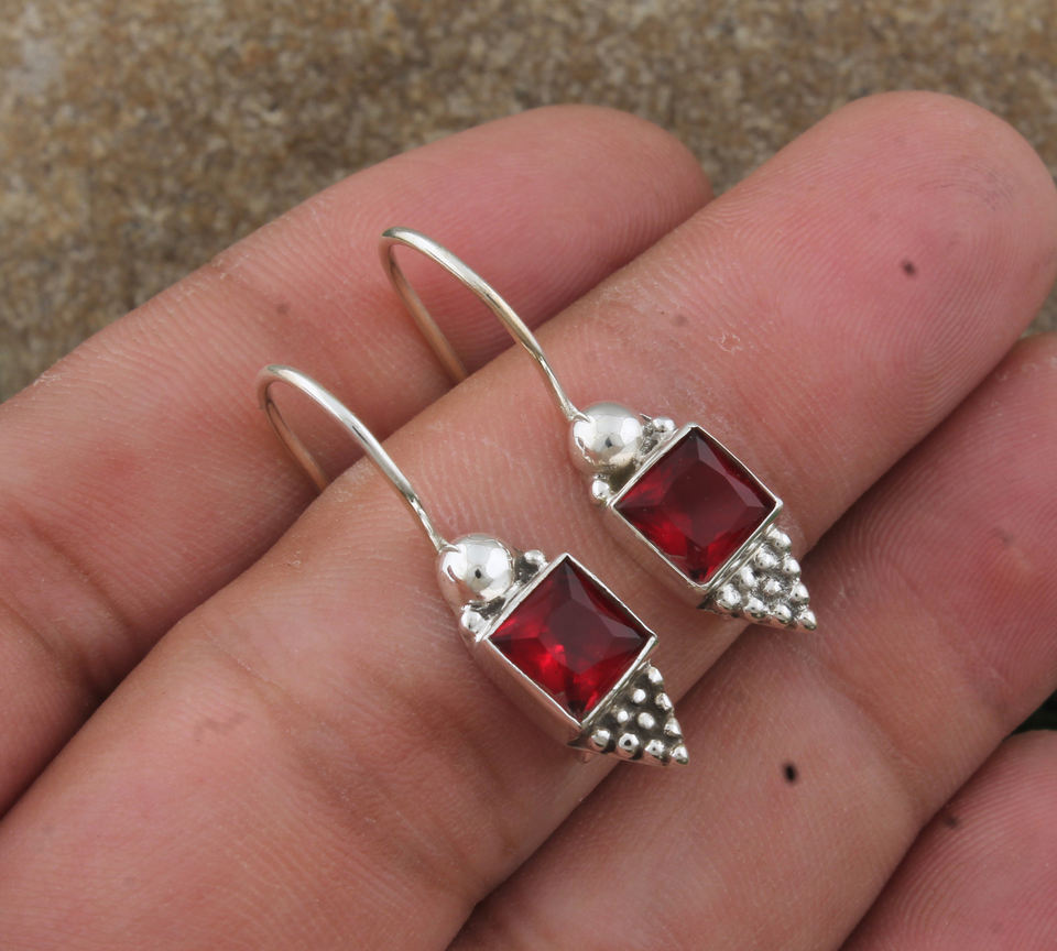 Boucles d'oreilles pendantes en quartz rouge naturel, argent sterling 925, fabrication artisanale, texture luxueuse, bijoux fins pour femmes, vente en gros pour les fêtes