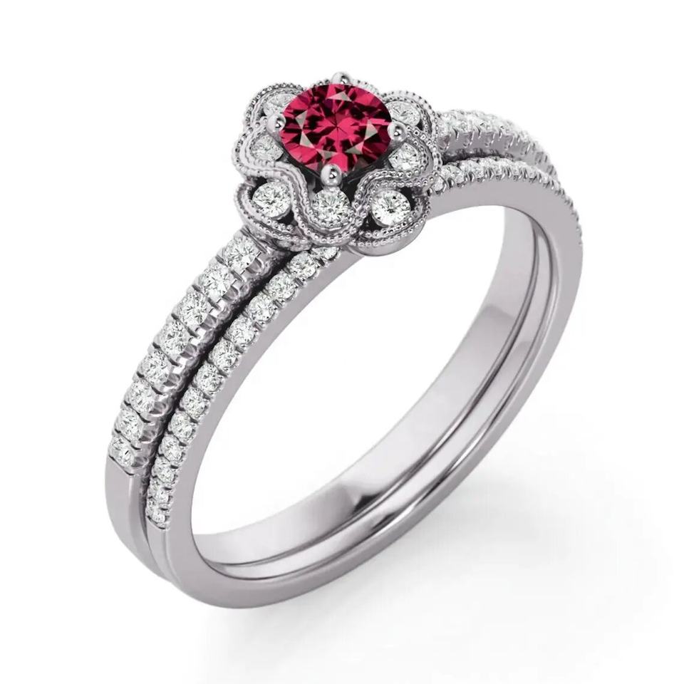 Grenat rhodolite naturel taille ronde or Vermeil bijoux en argent sterling 925 ensemble de bagues de mariage florales dernière conception bijoux fins