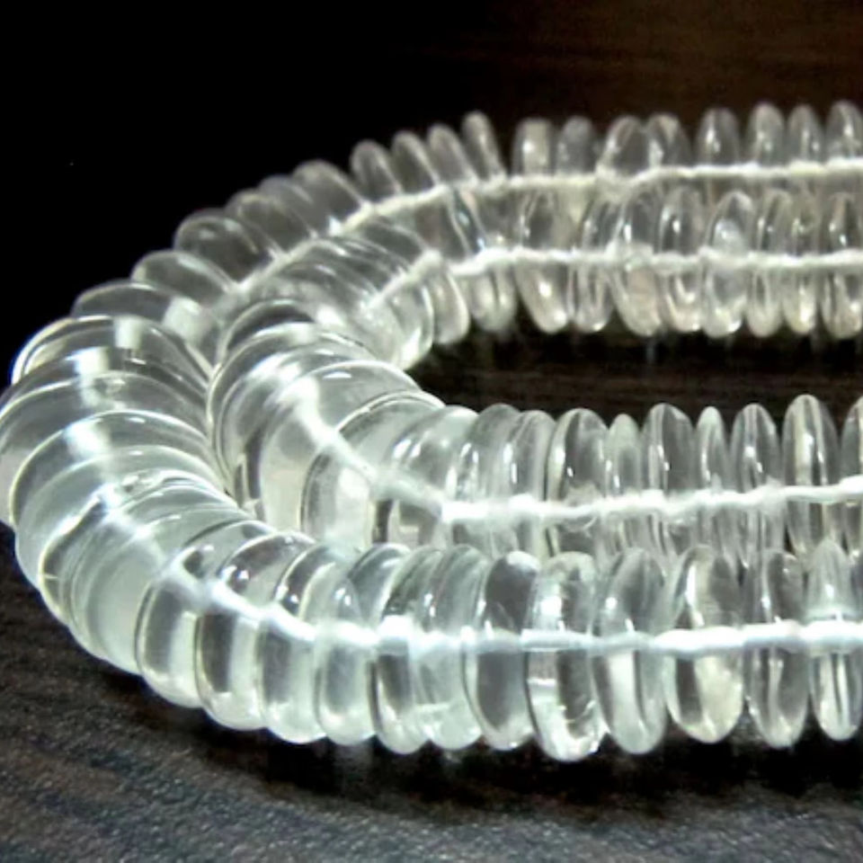 Cristal de roche naturel coupe allemande/forme de rondelle lisse cristal de roche/perles en forme de disque perles 8-12mm-ficelle de 8 pouces-bijoux