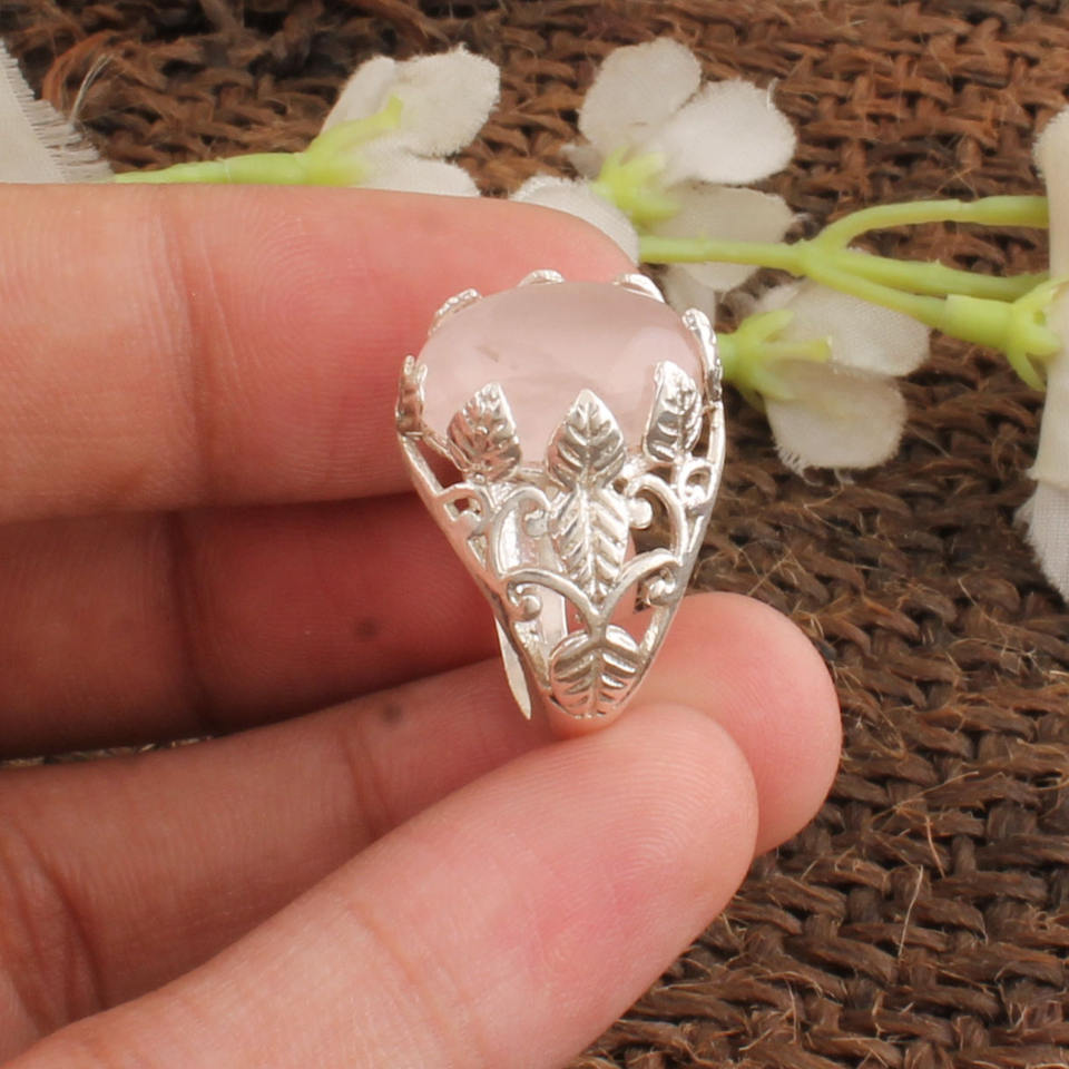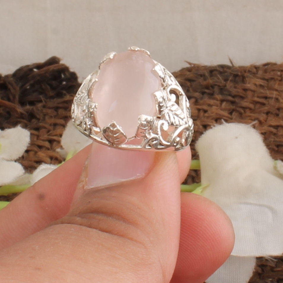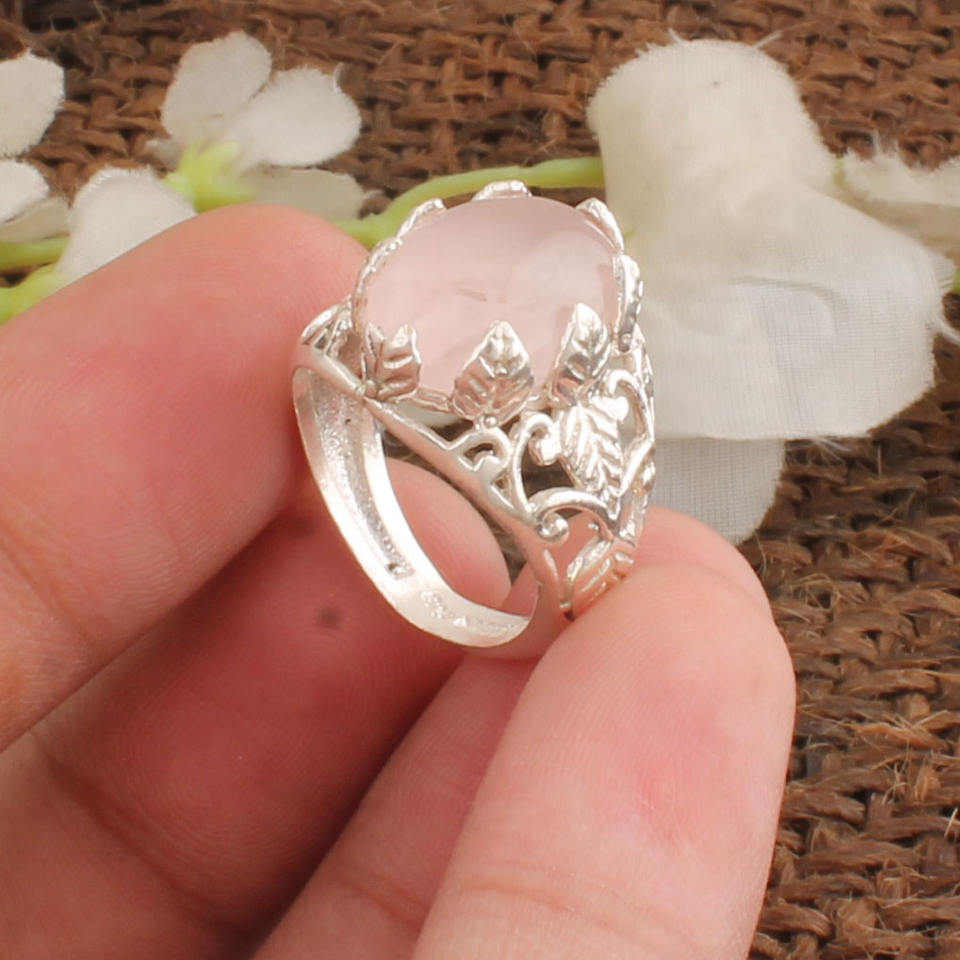Bague en argent sterling avec quartz rose naturel serti clos, pour femme, idéale pour les fêtes et comme cadeau romantique, bijoux authentiques en gros