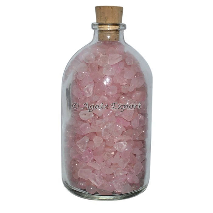 Bouteille de copeaux de quartz rose: vente en gros de bouteille de pierres précieuses: bouteille de puces guérison artisanat de pierre semi-précieuse