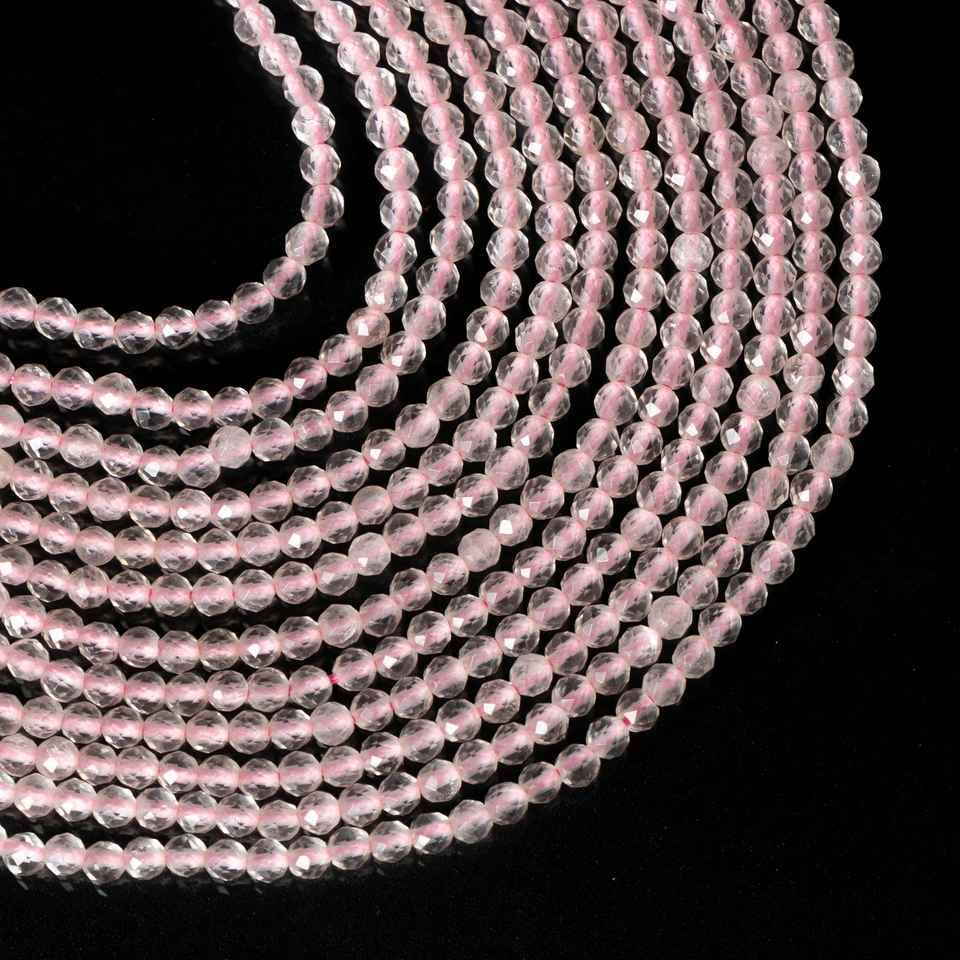 Nom du produit:Perles rondes à micro facettes en quartz rose