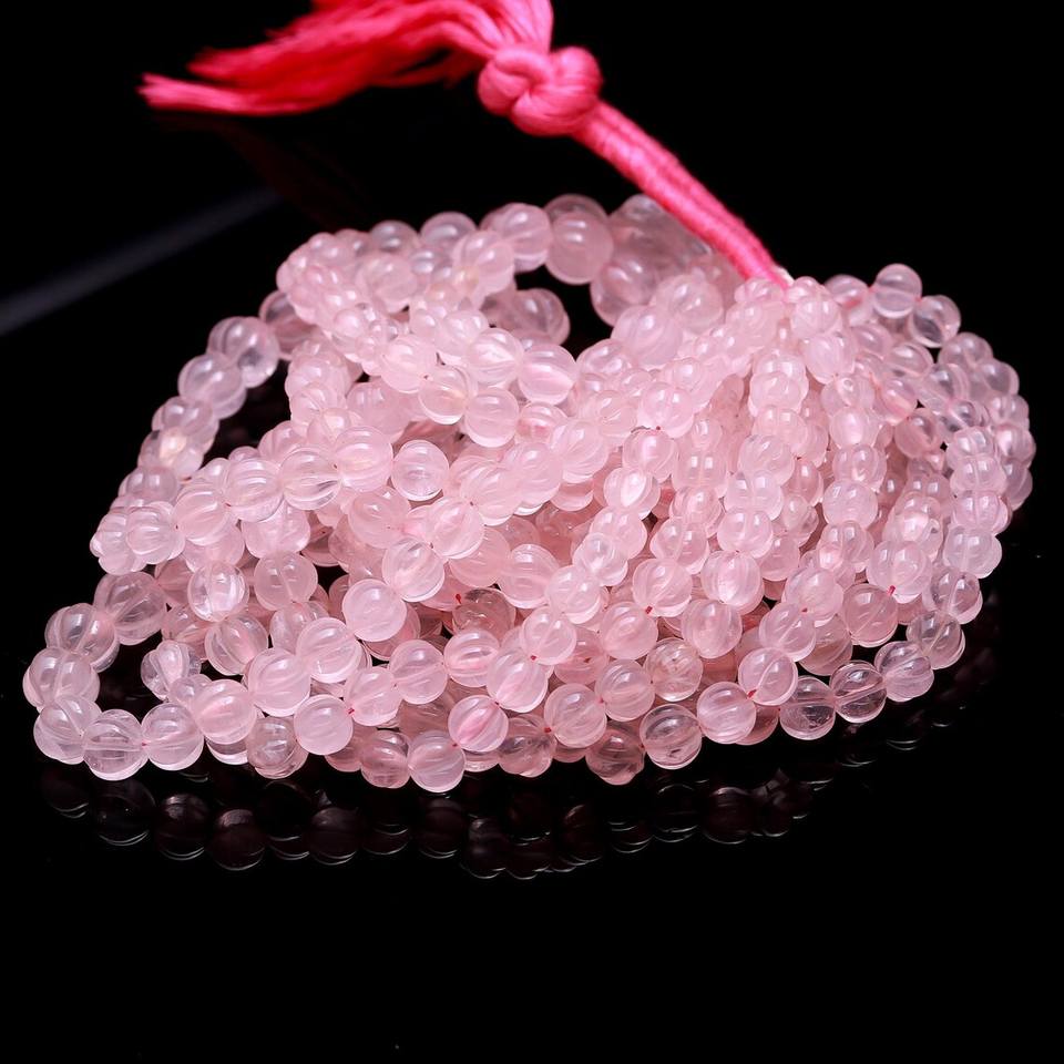 Product name:Rose Quartz Melon Carved Rondelle Beads