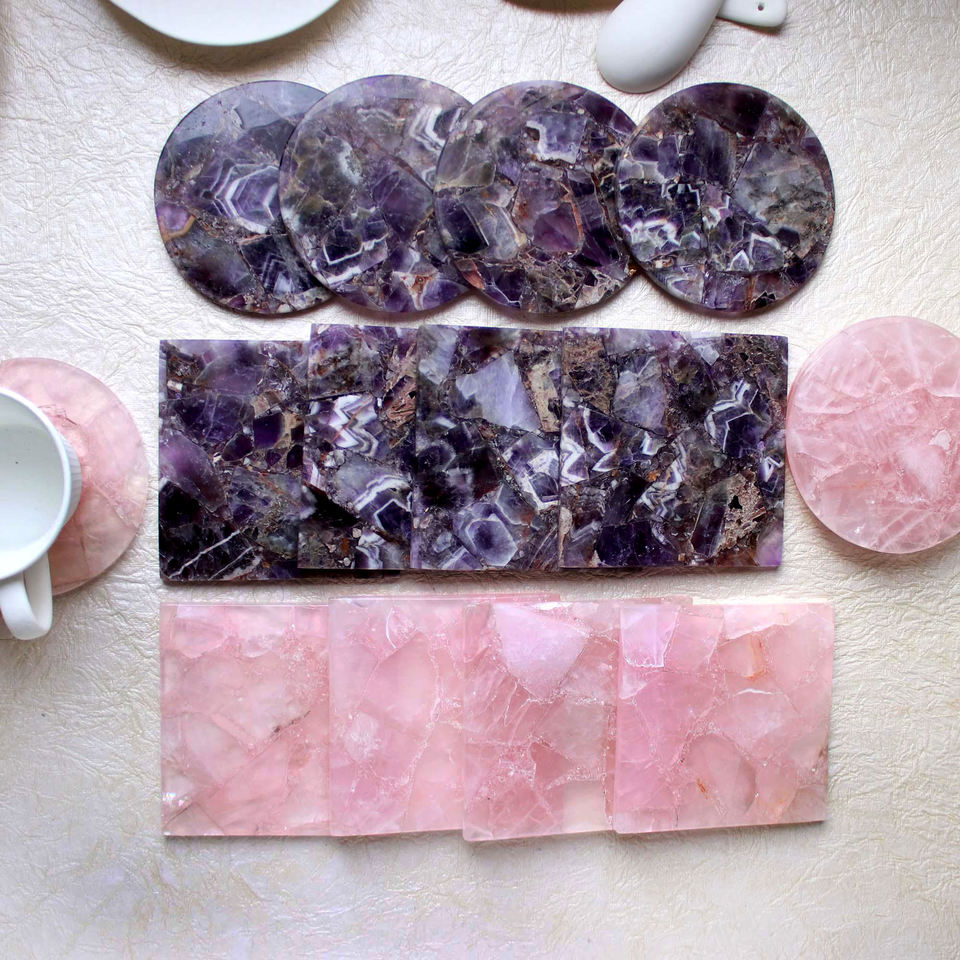 Nom du produit:Sous-verre en quartz rose et améthyste