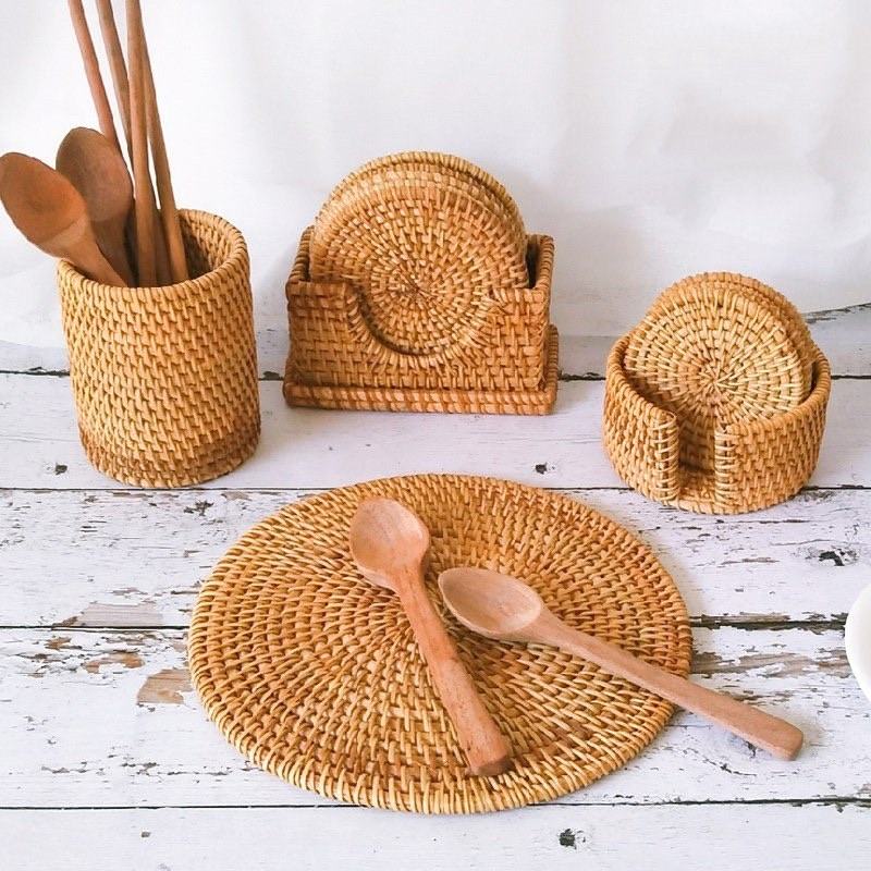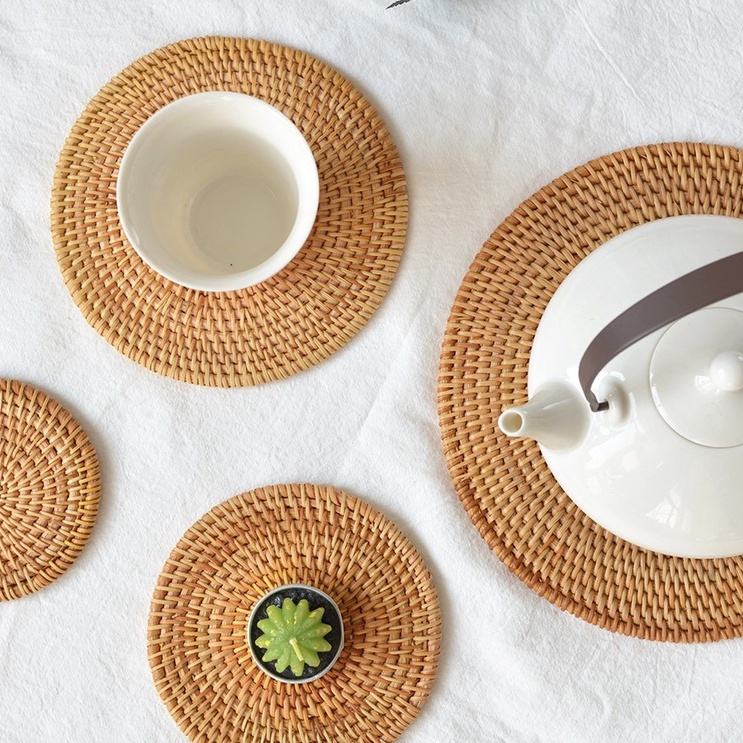 Natural Round Rattan Porcelain Cup Coasters Non-Slip Absorbent Table Mats Pad Holders Wholesale Price