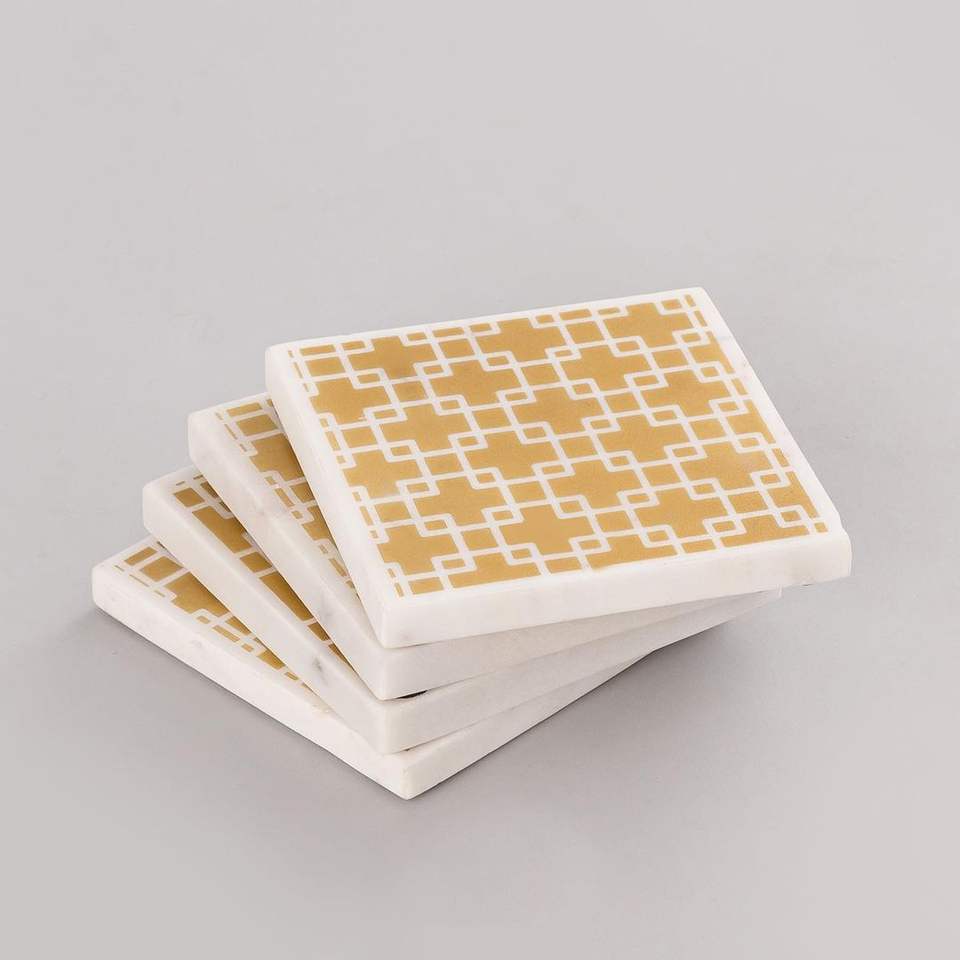 Sous-verre en marbre rond avec logo, 24 pièces, design de palmier, pierre naturelle, rose, quartz, dessous de verre transparents
