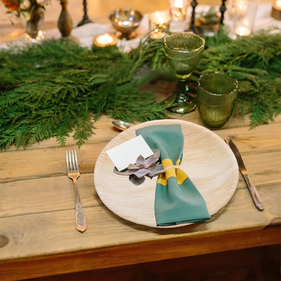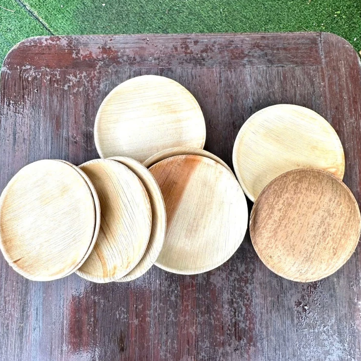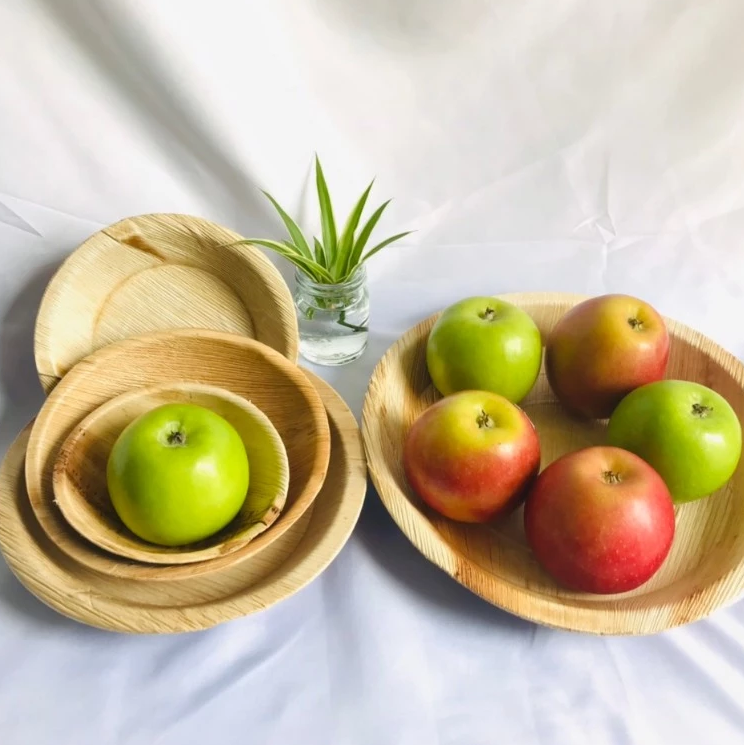 Assiettes à feuilles de palmier rondes naturelles-Assiettes biodégradables et jetables robustes pour un repas écologique