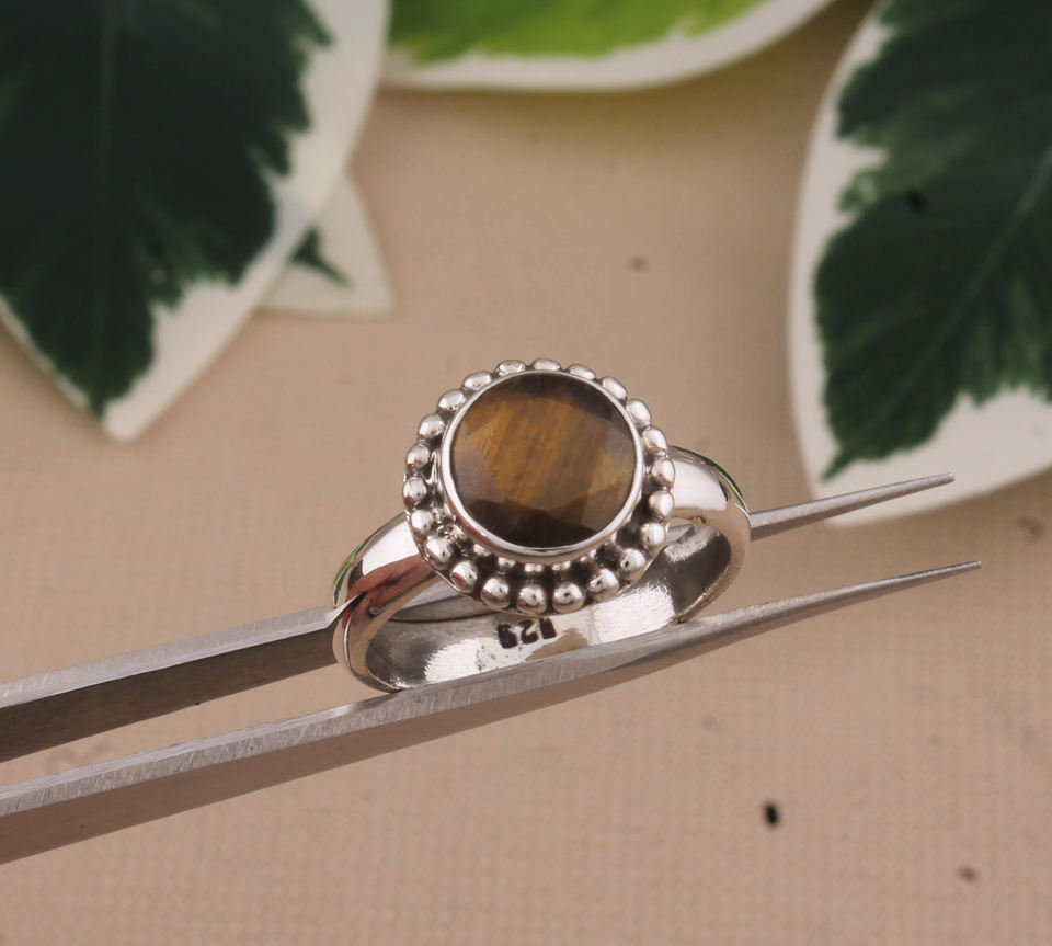 Bague Chevalière Classique pour Femme en Argent Sterling 925 avec Pierre Naturelle Œil de Tigre Rond, Pierre de Protection, Bijou Marron Véritable, Vente en Gros