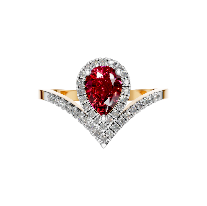 Style:Unique Teardrop Natural Red Ruby and Diamond Gemstone Ring