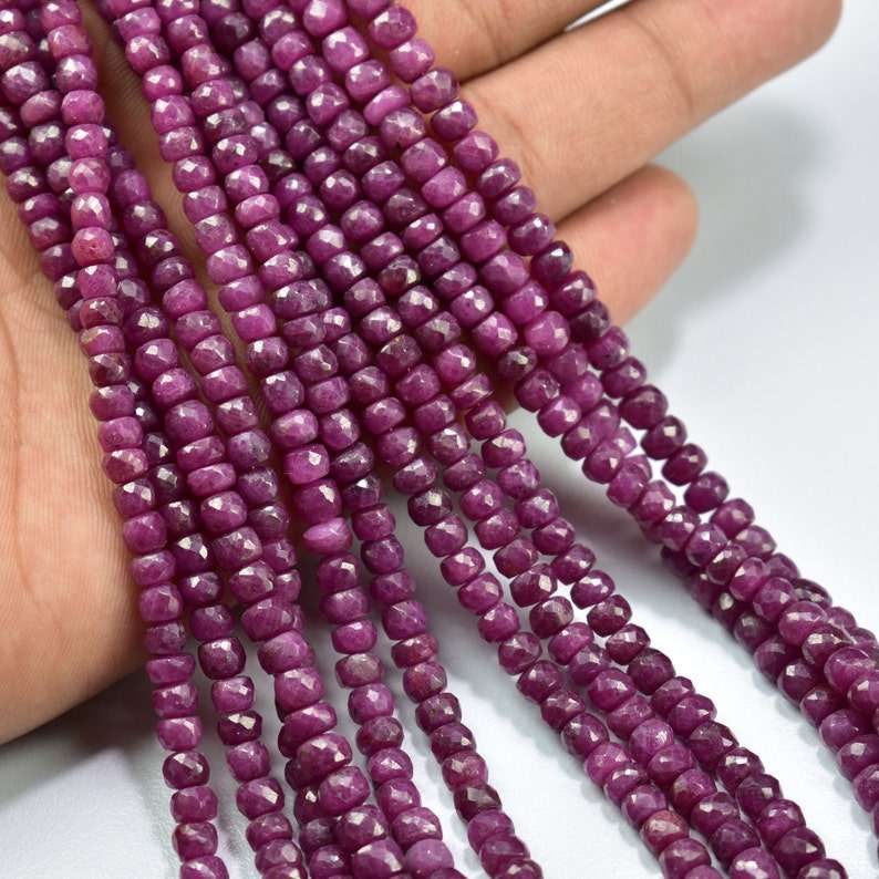 Perles Rondelle à facettes rubis naturel 4.5-5.5mm perles de couleur rouge pour la fabrication de bijoux au prix en gros brins de pierres précieuses bracelet à bricoler soi-même