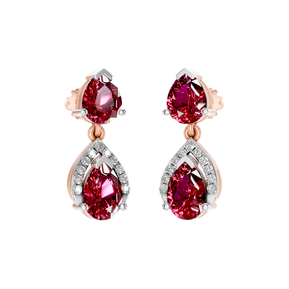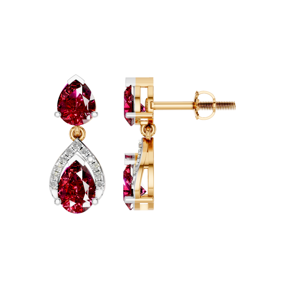 Elegant Pear-Cut Natural Ruby Gemstone Earrings with Diamond Accents