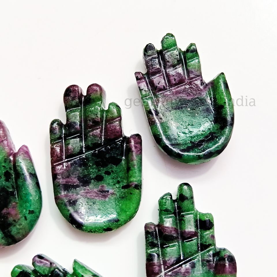 Product name:Natural Ruby Zoisite Hamsa Hand Carved Gemstone