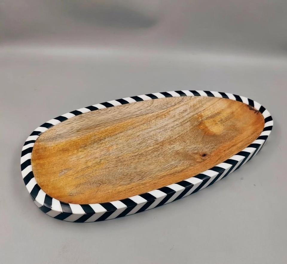 Assiette de service en bois rustique naturel avec rayures en résine, style élégant, vaisselle, assiette de service pour aliments, cadeaux de Noël