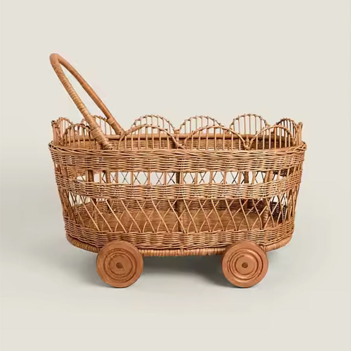 Natural Rectangle Pink Rattan Eco-Friendly Bohemian Style Kids Trendy Toys Wicker Doll Wagon Customized Color Vietnam Factory
