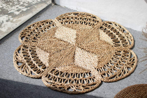 Vente en gros d'osier épais écologique jonc de mer tissé style bohème antidérapant tapis acceptant les animaux de compagnie tapis salon Vietnam