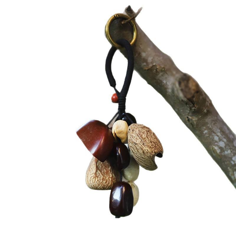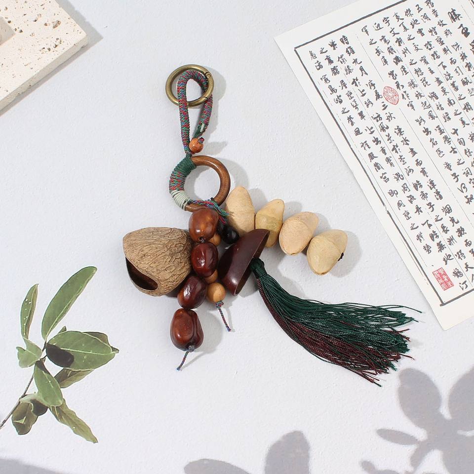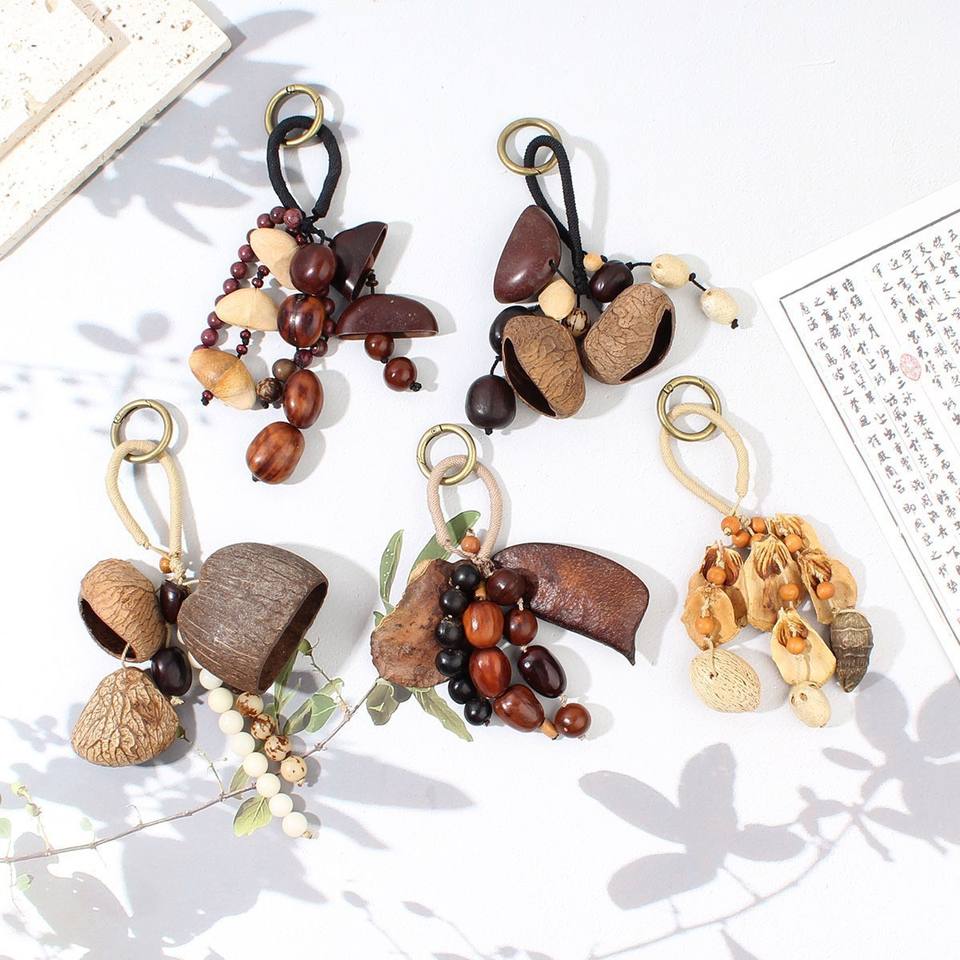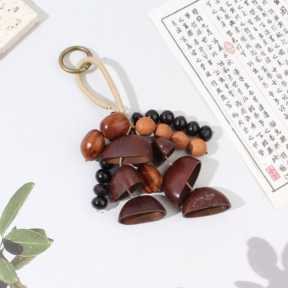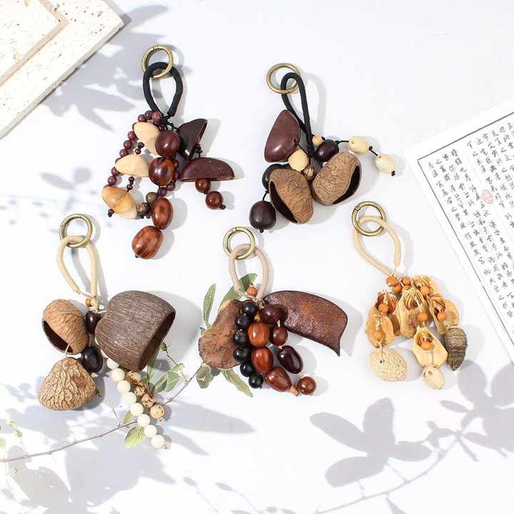 Pendentif carillon éolien en coquille de graine naturelle décoratif fait à la main cloche thérapie sonore suspendu cloche plante fruit sac suspendu ornement de voiture