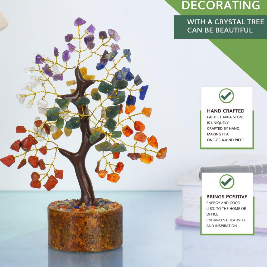 Pierre semi-précieuse naturelle sept Chakra arbre de pierres précieuses 100 puces arbre de cristal Feng Shui Figurine pour la décoration de la maison