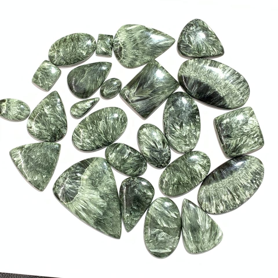 Cabochon de Quartz Séraphinite Naturel Vert Argent Pierres Précieuses en Cristal Lâche pour la Fabrication de Bijoux Tailles 9mm 14mm 20mm Forme Ovale