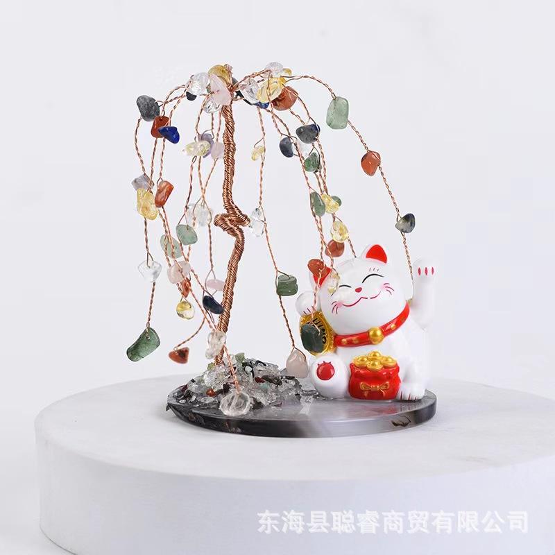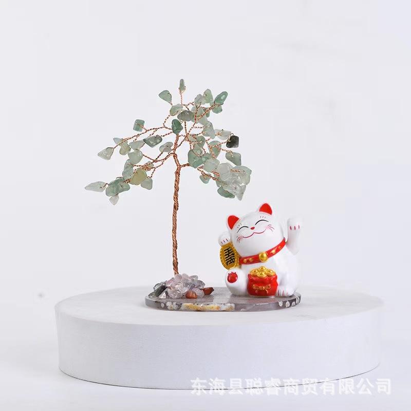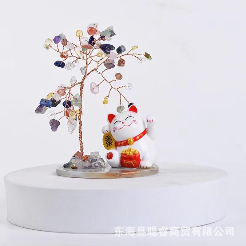 Arbre à Monnaie en Cristal Naturel Sept Couleurs avec Base en Agate, Décoration Maison et Bureau, Cadeau Artisanal