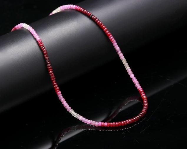 Collier de perles rondes en rubis naturel ombré, argent sterling 925, or | Bijoux en pierres précieuses facettées | Approvisionnement en gros
