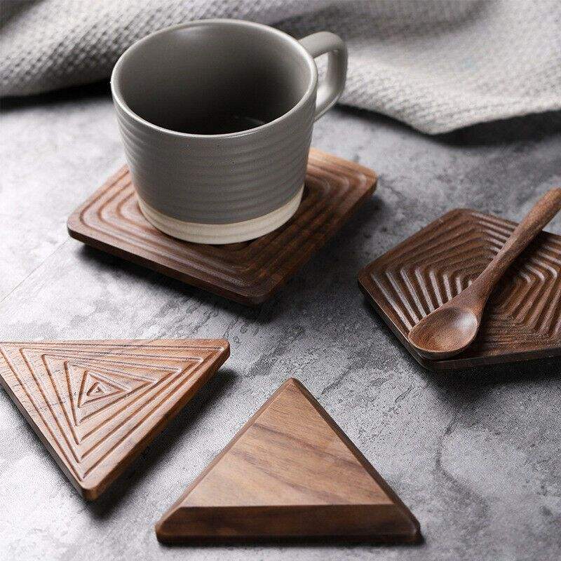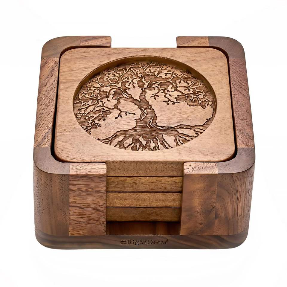 Ensemble de sous-verres en bois de sheesham naturel avec support, qualité supérieure, pour restaurants, cafés, bars.