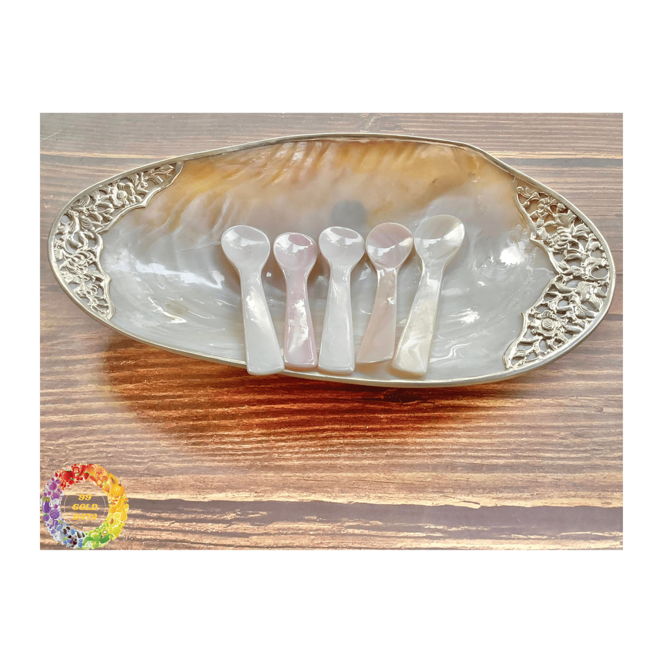Ensemble d'assiettes, cuillères et fourchettes en coquillages naturels-Produit décoratif, luxueux et fait à la main du Vietnam