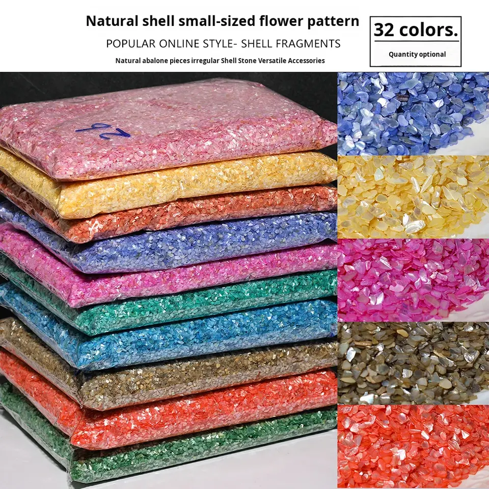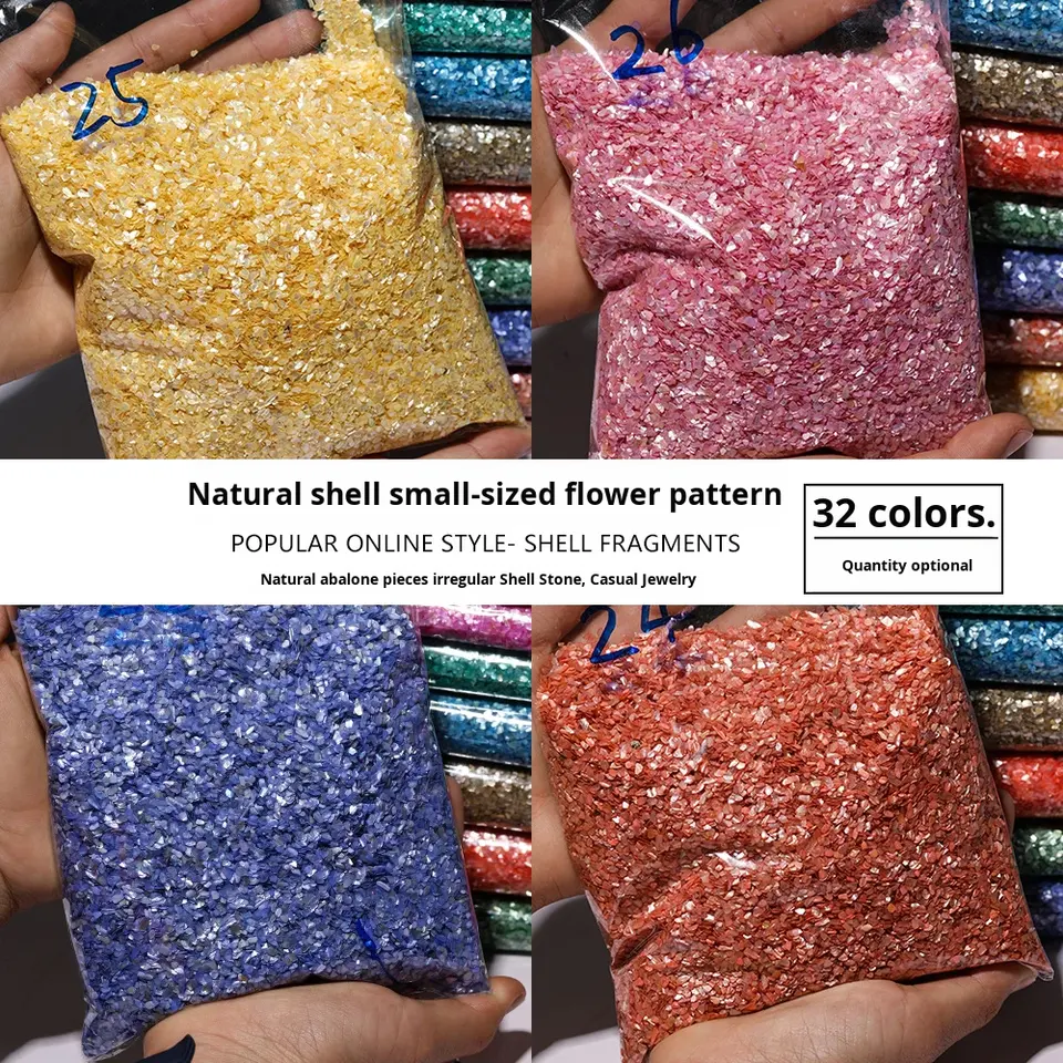 Mosaïque de coquillages naturels de petite taille 2-3mm, forme irrégulière, procédé de teinture, pour nail art, bijoux faits main, vêtements, autocollants, broches, épingles à cheveux