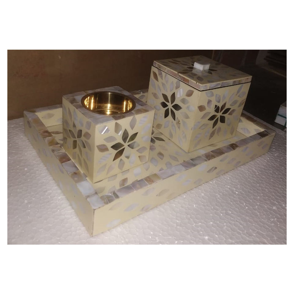 Natural Shinning Most Beautiful Modern Look Pure Mother of Pearl Wooden Bakhoor Burner for Home Decoration