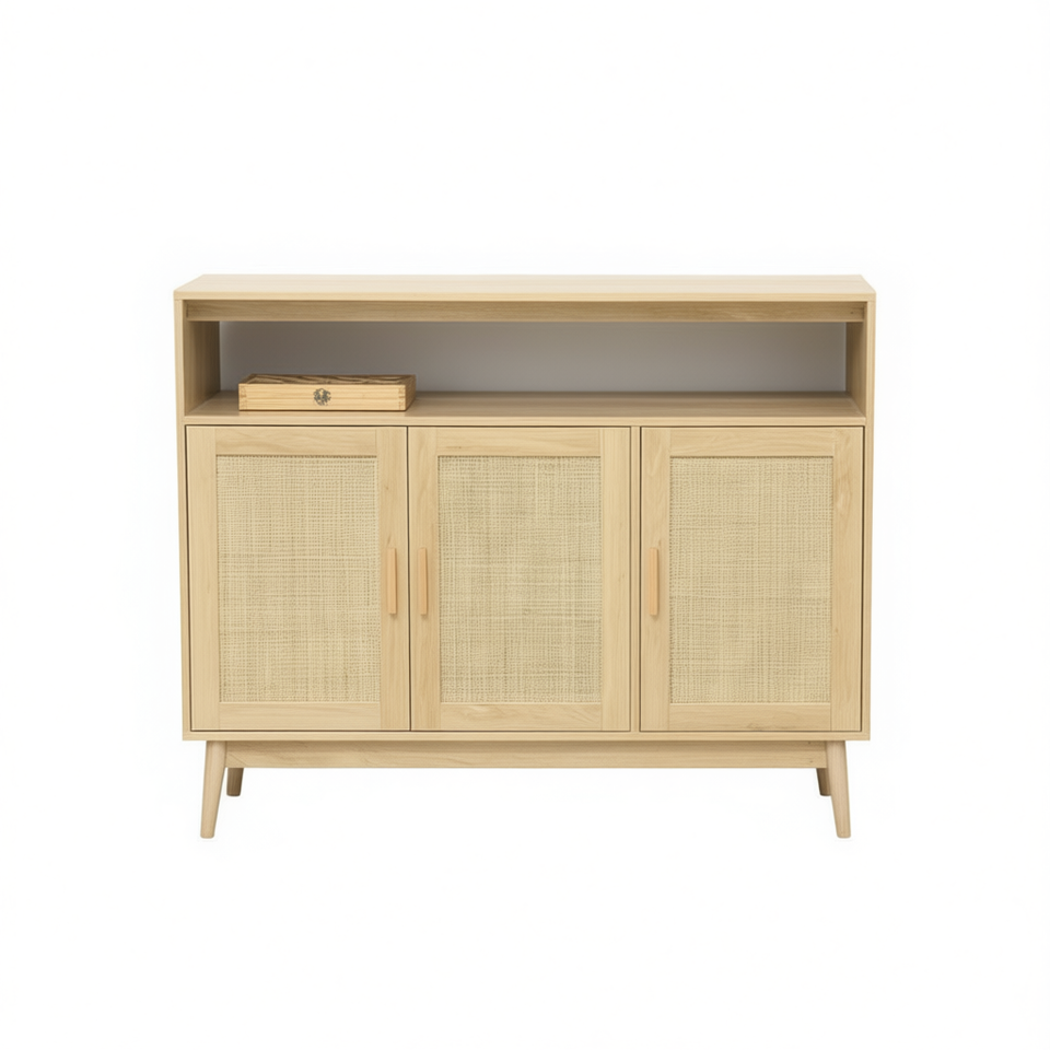 Buffet de rangement naturel avec portes en rotin, 3 portes, meuble de rangement pour salon, design scandinave