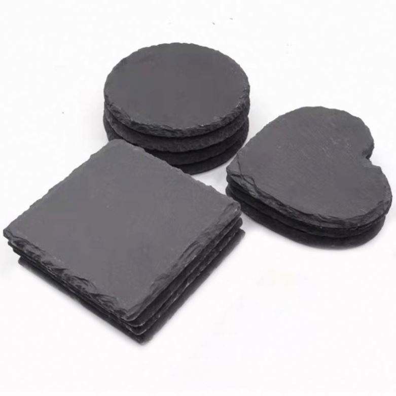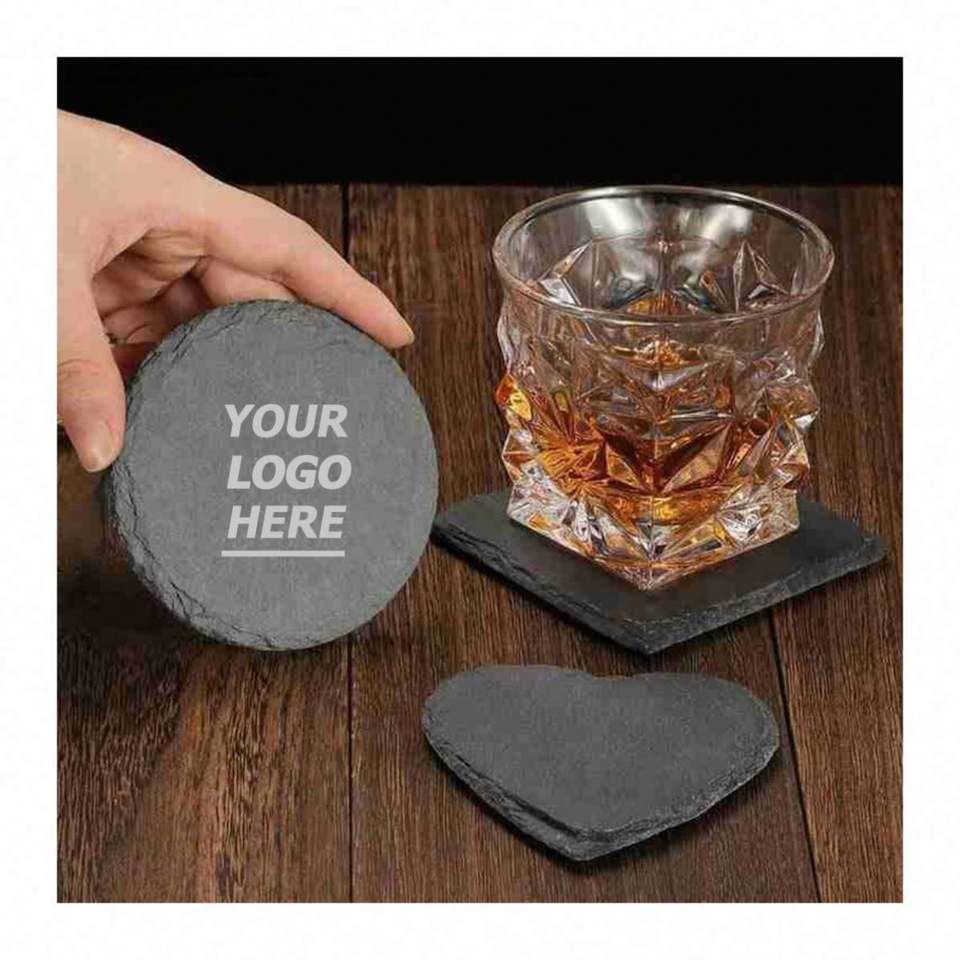 Ensemble de sous-verres en ardoise naturelle - Sous-verres ronds, carrés et en forme de cœur durables, gravés avec des motifs imprimés par UV, résistants à la chaleur, pour un usage domestique