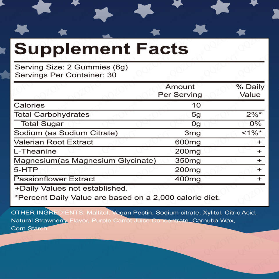 Valerian Root Extract, L-Theanine, Passionflower Extract, Magnesium, 5-HTP