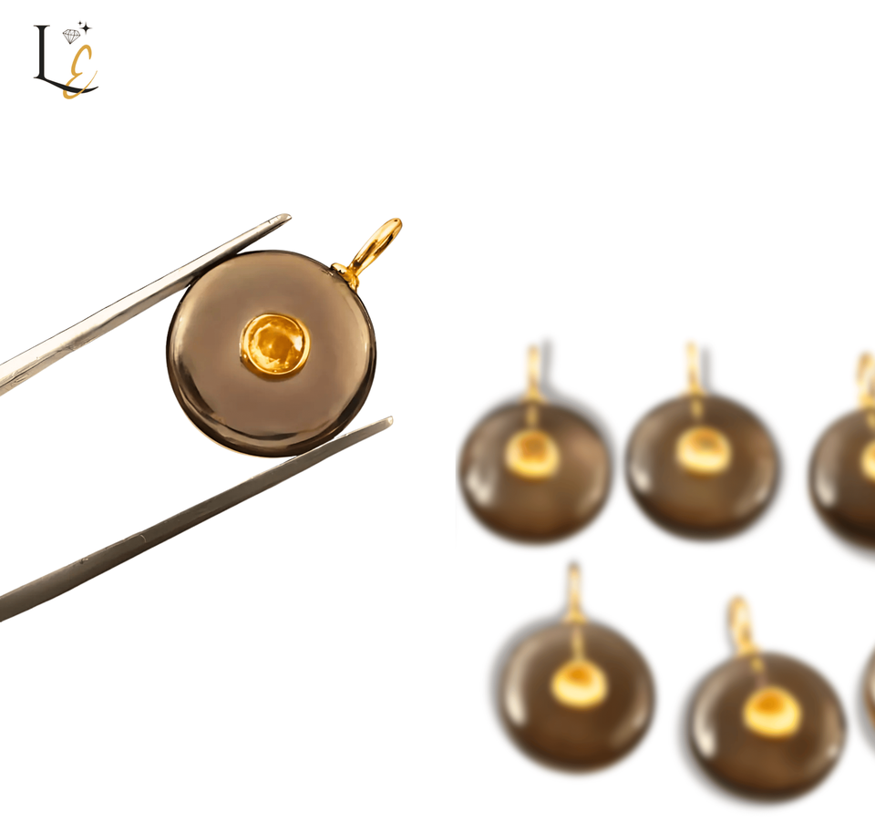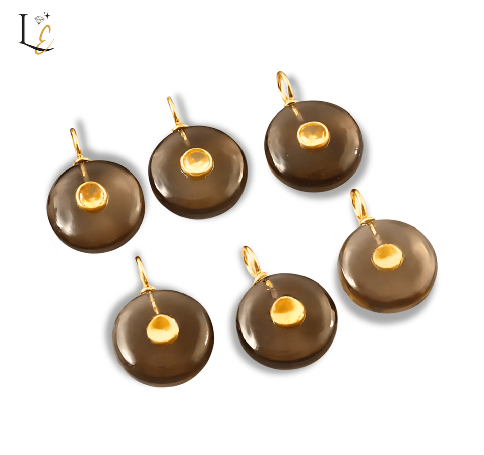 Nom du produit:Pendentif en pierre précieuse incrustée de forme ronde en quartz fumé naturel