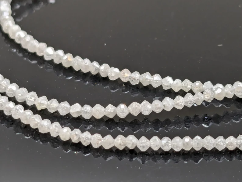 Perles rondes facettées blanches comme neige naturelles 1,8-2,2 mm Fabrication de bijoux Perles de diamant blanc de très haute qualité Fabrication de colliers